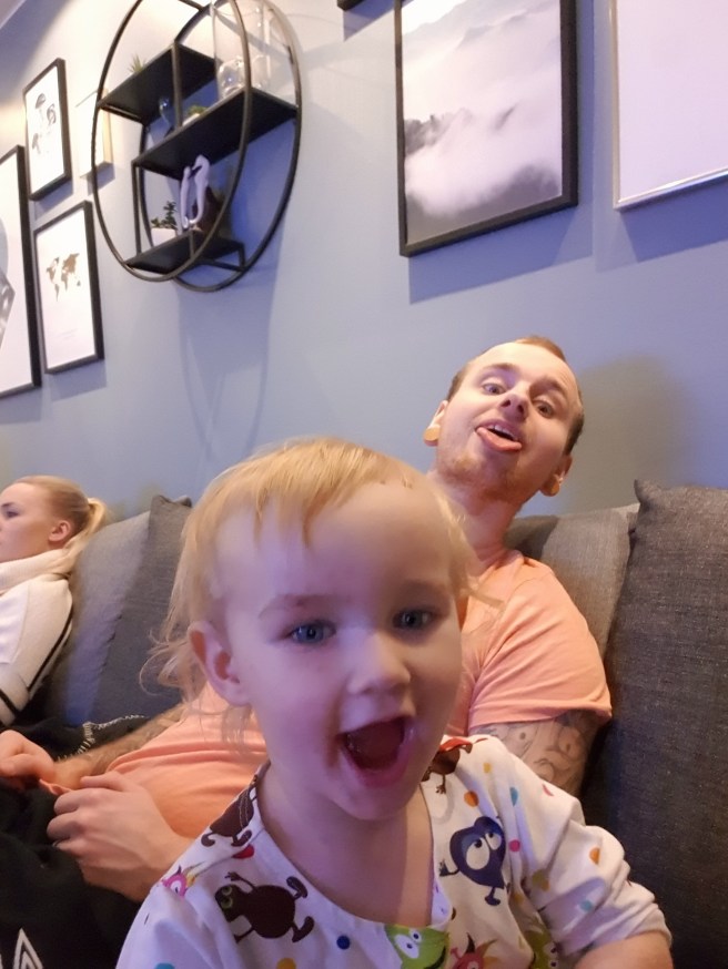 Hon älskar att ta selfies! Och så öppnar hon alltid munnen, för med en del filter så händer det saker då. Och det har hon lärt sig, det lilla livet! Även pappan gör ju likadant… Fniss!!
