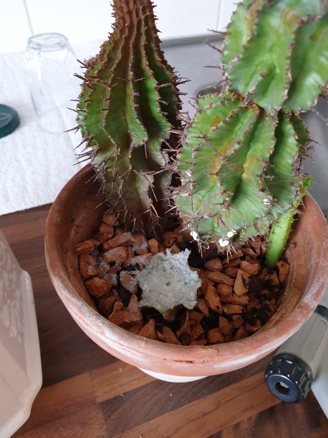 Nu har jag fixat lite hemma. Bland annat har jag vattnat alla växter, och tagit fram sågen igen. Tagit av lite på de längsta igen. Och tagit av en kaktus. Hua, vad äckligt det var att såga i den!!.