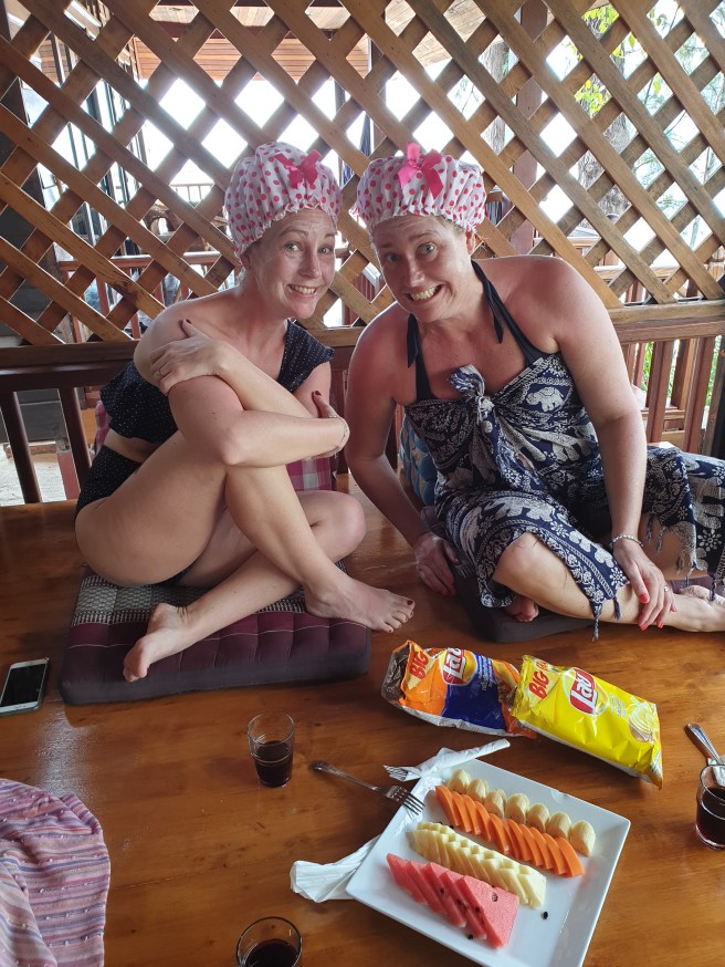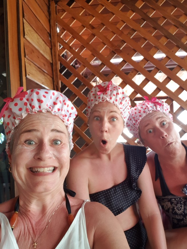 Systeryster, Svägerskan och jag hade tjejmys på min altan med ansiktsmask, hårinpackning och sangria.