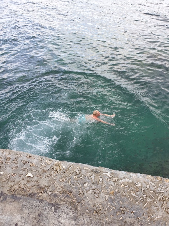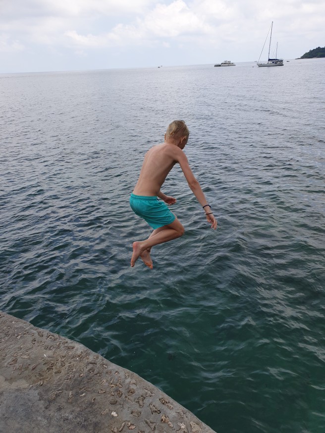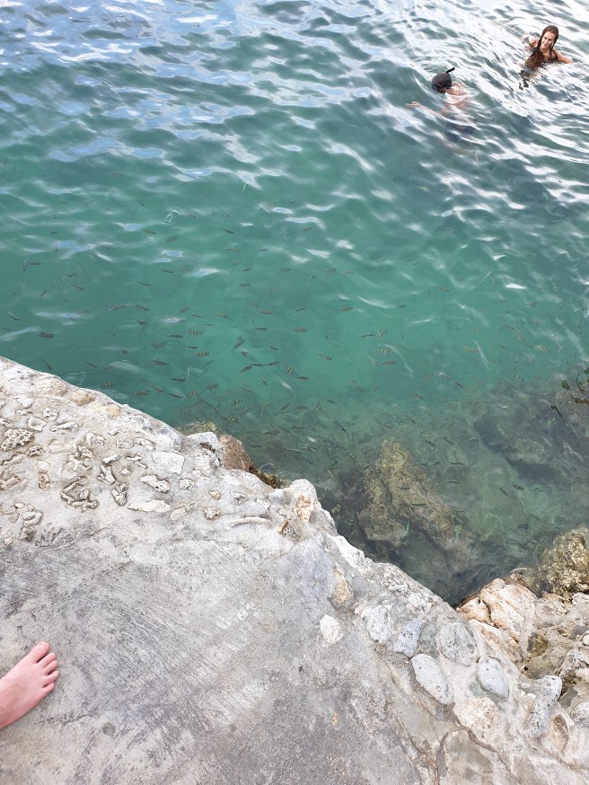 Barnen hoppade från klippan ner i vattnet, och så snorklade de och Svägerskan.