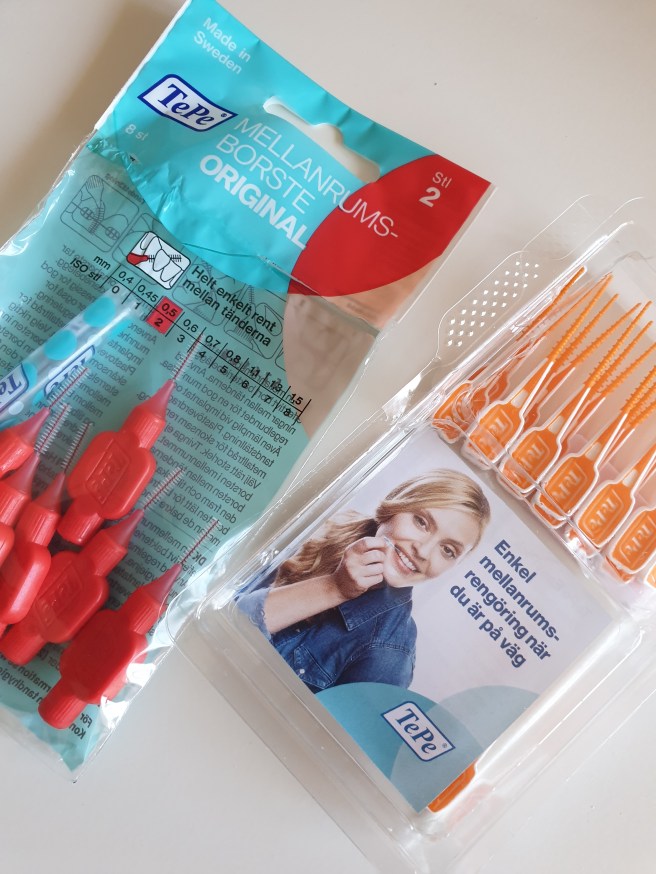 Igår köpte jag fler tandrengöringsprylar. Nu var det väl själva den om det inte ska bli rent i tandfickorna!!