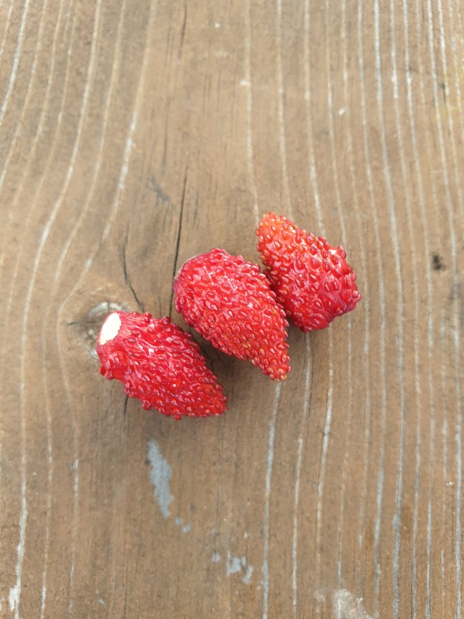 Plockade några smultron och åt.
