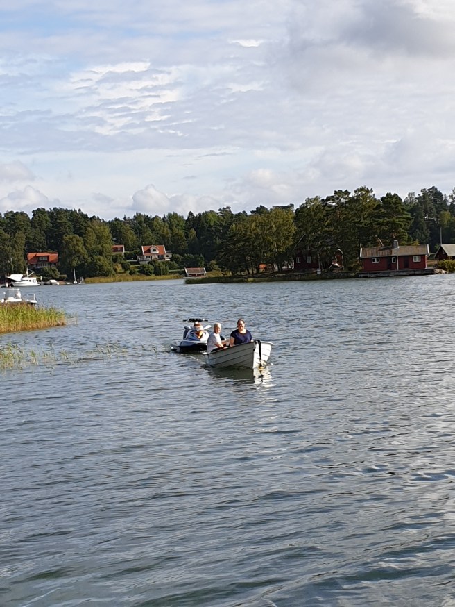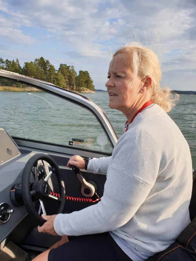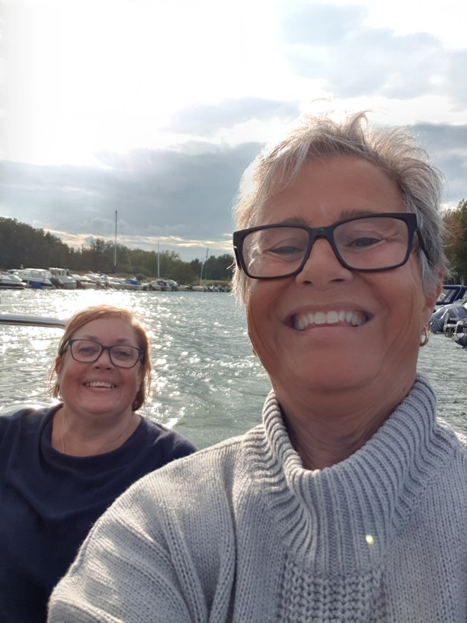 Marie och jag möttes vid Anitas båtplats, där hon kom susandes och plockade upp oss. Anita kör nåt som om hon aldrig gjort annat!! Så imponerande!