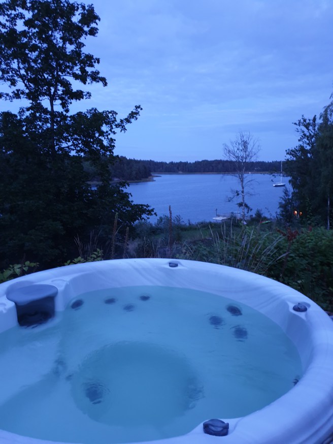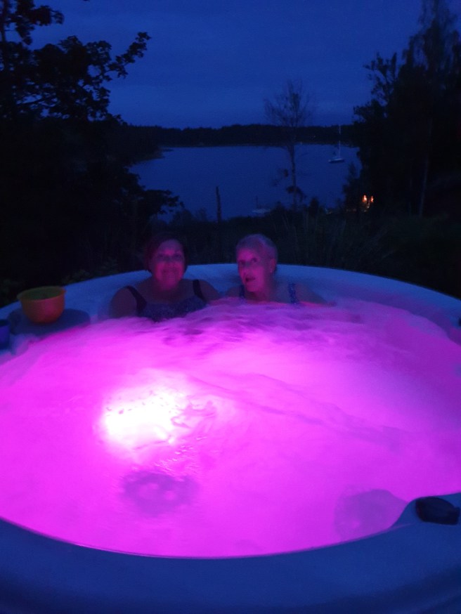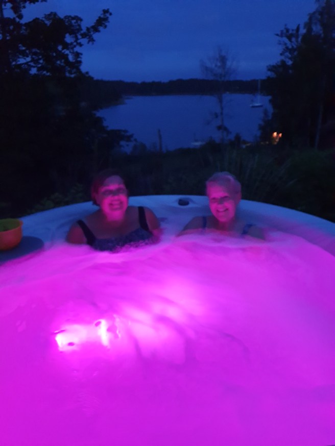 Vi badade i bubbelbadet på kvällen.