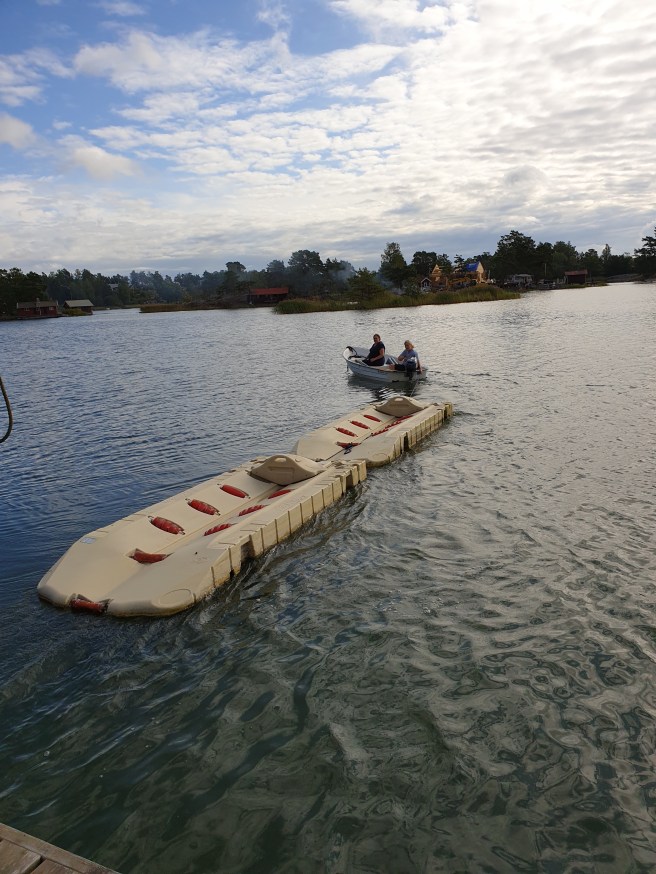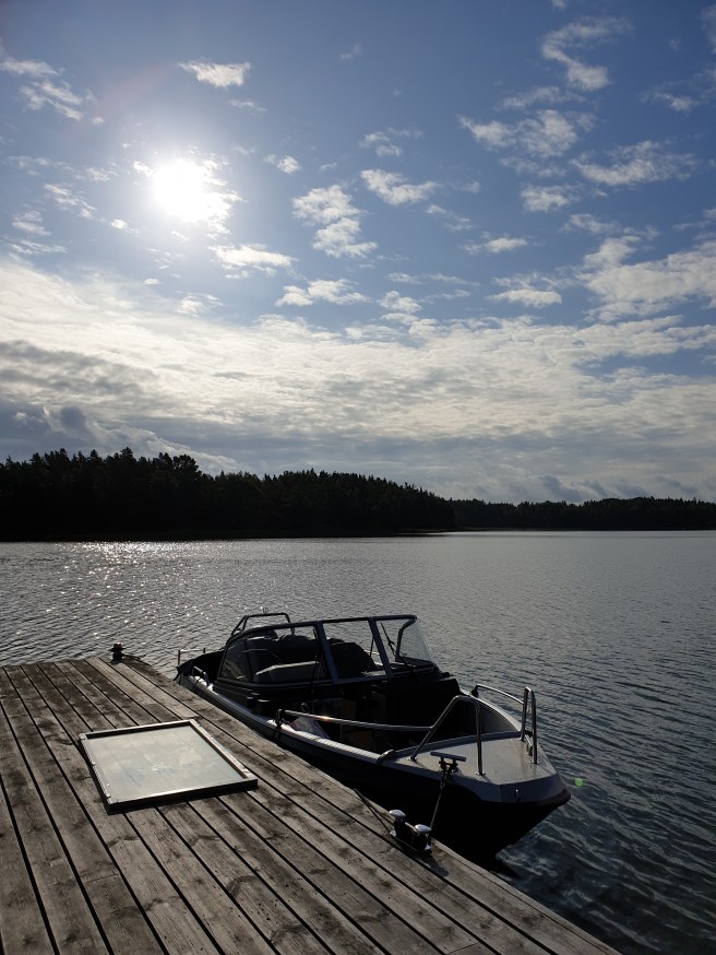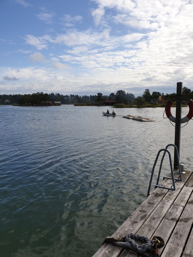 Hon tog lillbåten, och Marie åkte med. Under tiden satt jag på bryggan.
