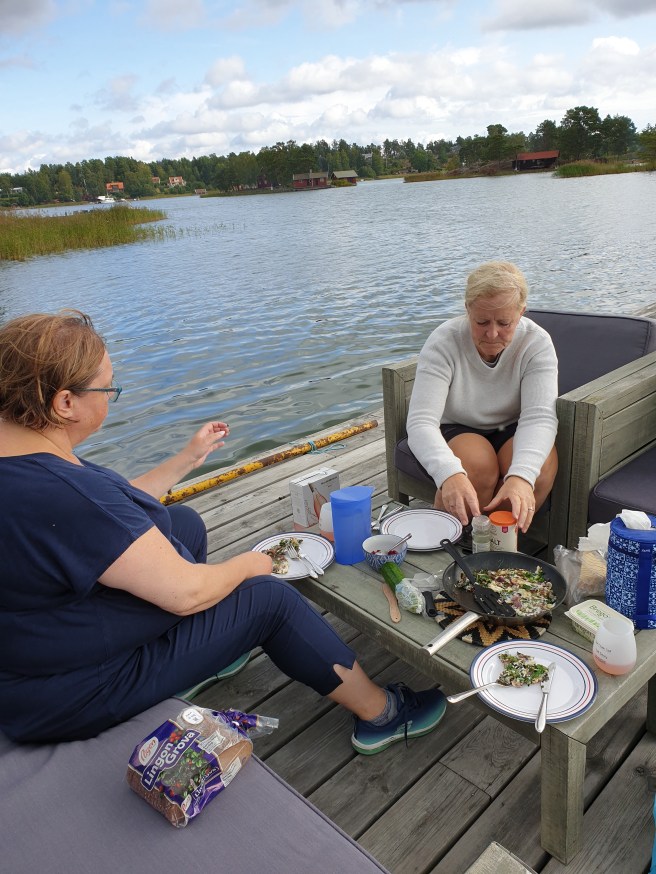 Sen lagade vi mat och tog med till bryggan.