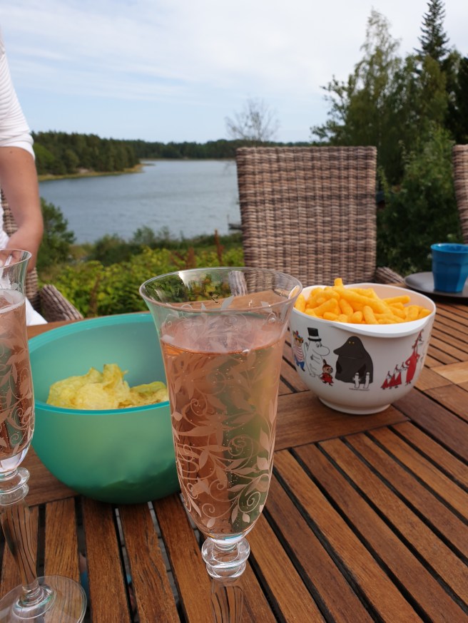 Vi satt ute på ena altanen och drack bubbel på kvällen, efter att vi plockat upp Nästanguddottern.
