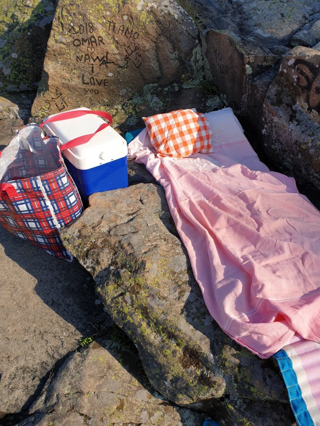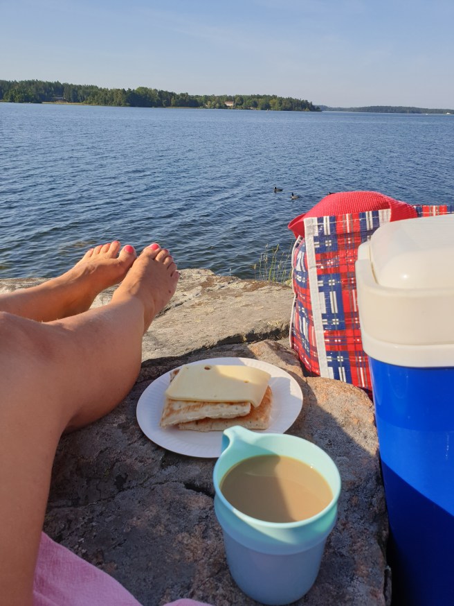 Vaknade strax före 8 idag, upp och packa matsäck och iväg till klipporna.