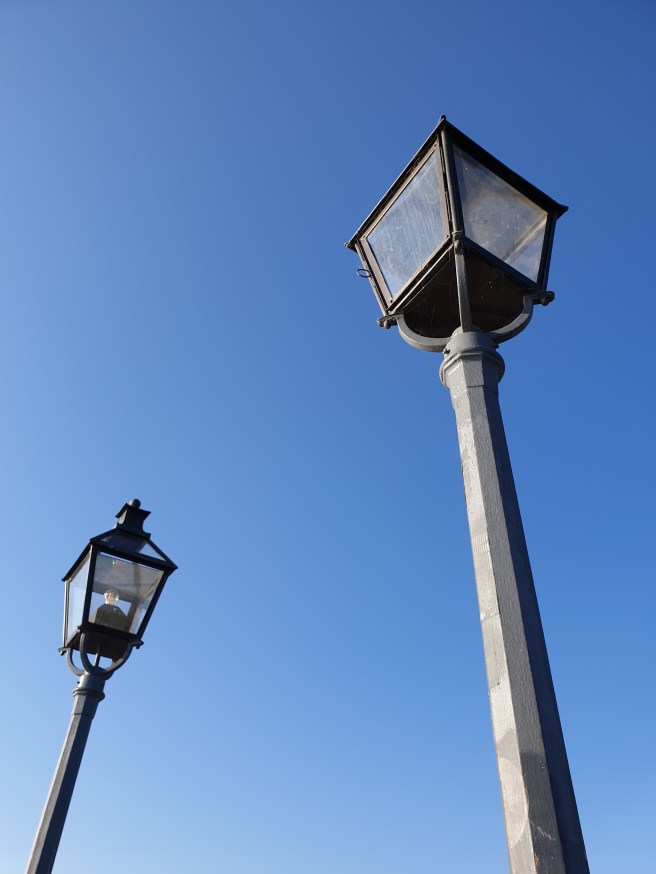 Igår när vi gick över bron till Skeppsholmen så visade Carina på vad snygga lyktorna är där.