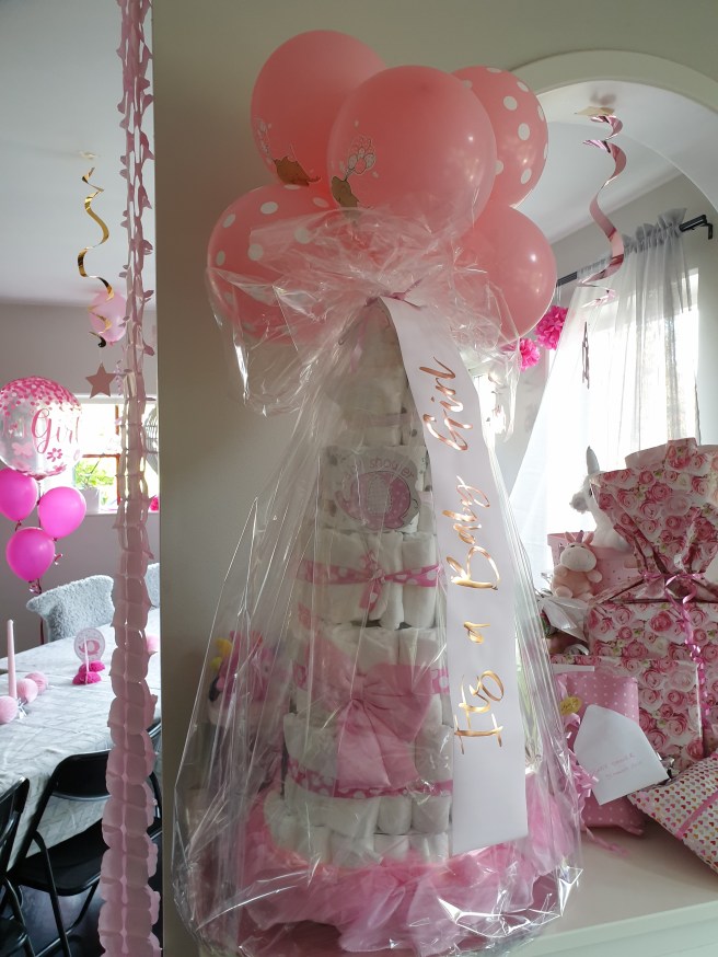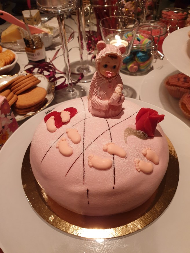 En av hennes kompisar hade så klart gjort en blöjtårta.