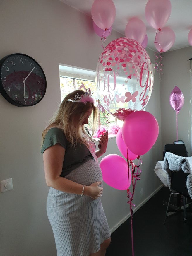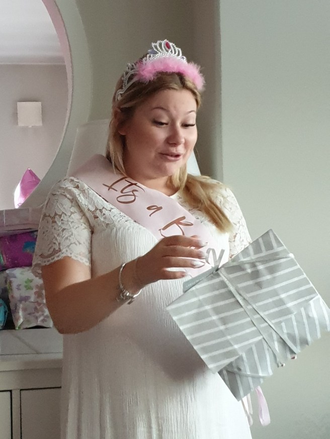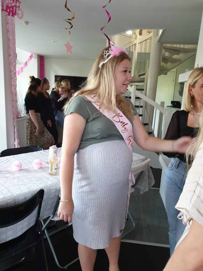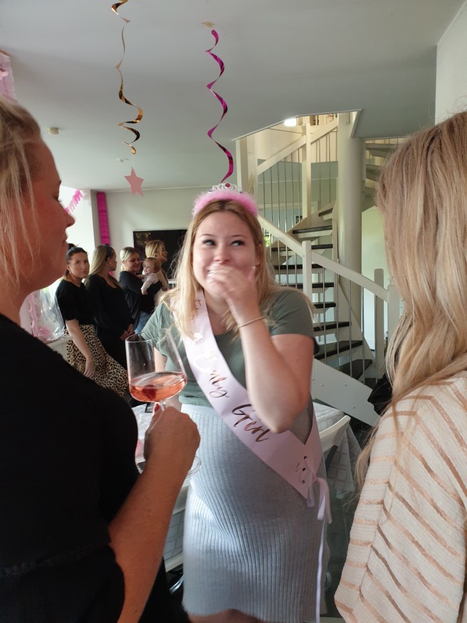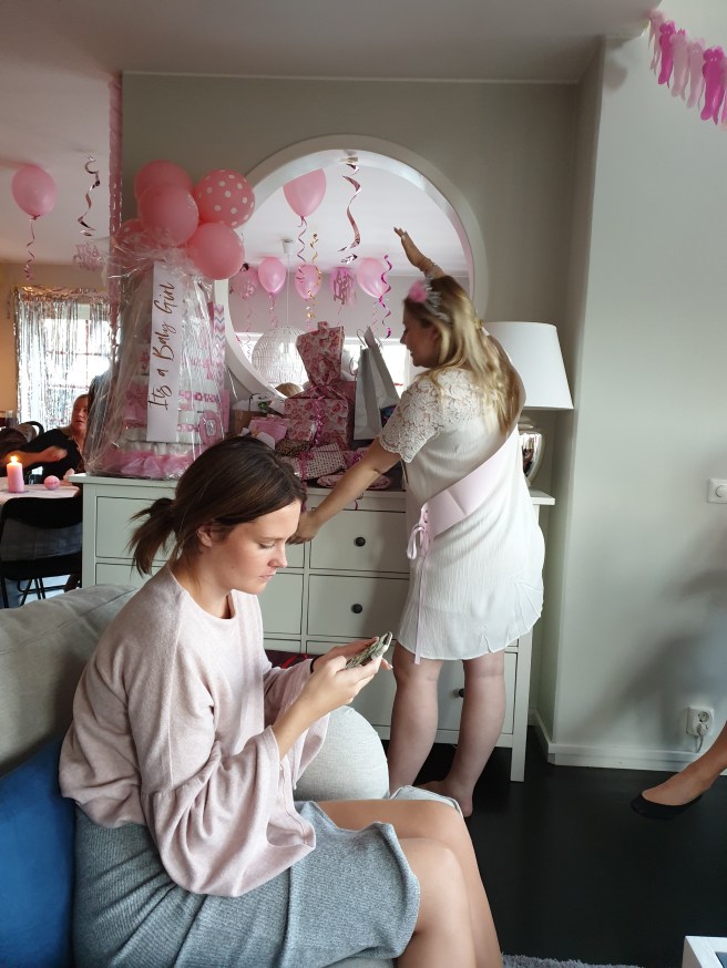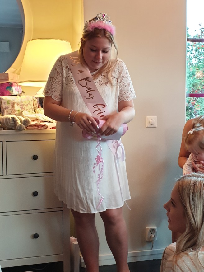 Gästerna började ramla in så smått, och rätt var det var så kom den blivande mamman!