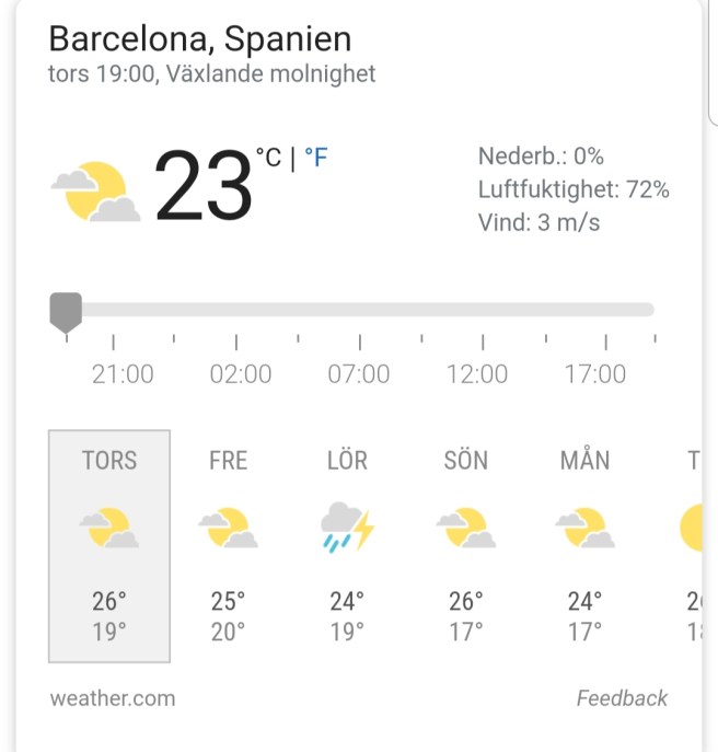 Nu har jag ätit frukost och ska snart försöka bestämma vilka kläder jag ska resa i. Vill helst inte ha varm jacka med mig, men kan jag stå ut att ta mig iväg utan?? För i Barcelona lär jag inte behöva den!