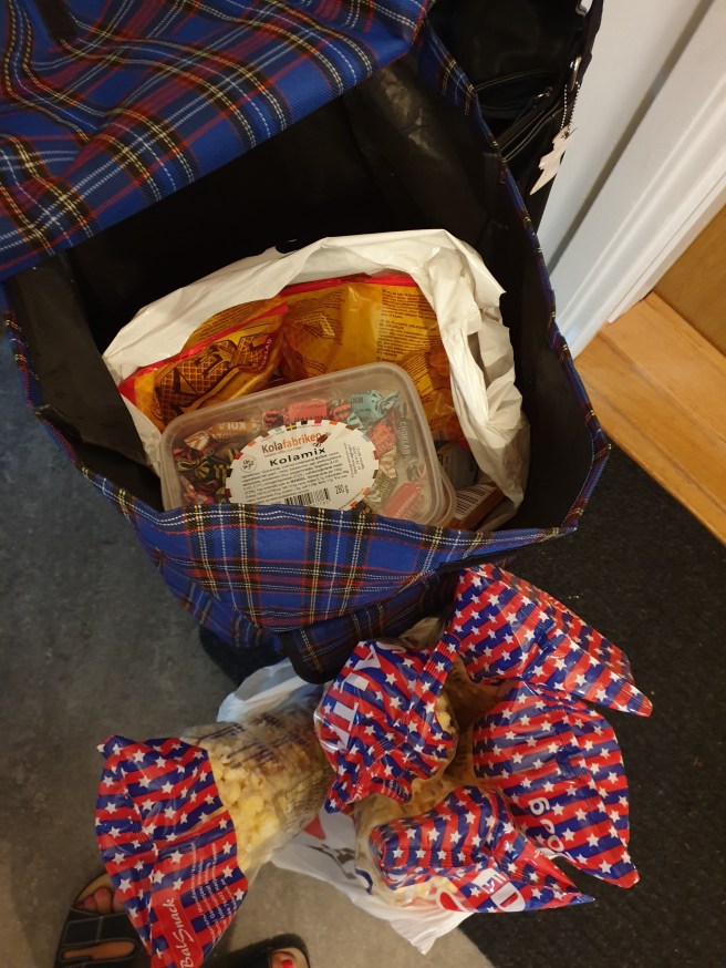 Nettis och jag ska ha 10-årskalas på jobbet. Så 1 Dramaten full med godis och 1 kasse popcorn blev det!