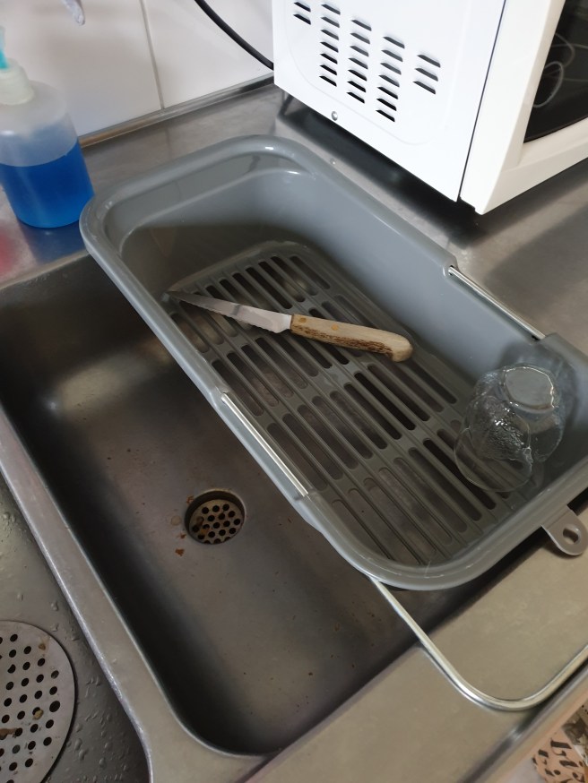 Den kallades för frukt- och grönsaksskölj, men jag använder den som diskställ. Perfekt för de enstaka saker jag handdiskkar!