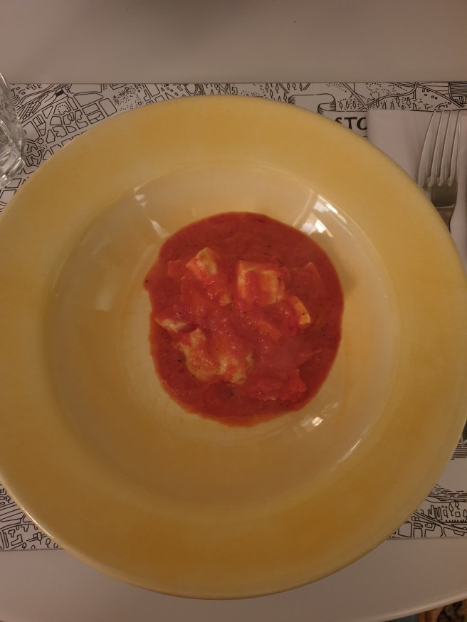 Jag åkte hem efter infomötet, duschade och packade en nattväska. Sen åkte jag till en kompis som gjorde en så himla smarrig halloumigryta.