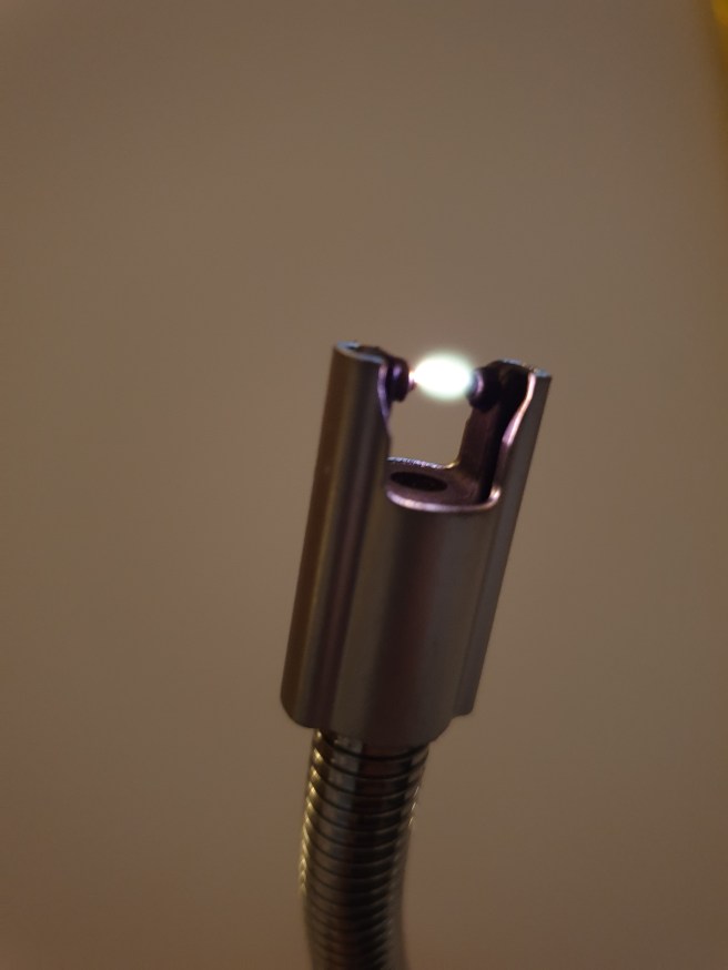 Det blir ingen låga direkt, bara lite. Men tillräckligt för att tända ljus. Perfekt!