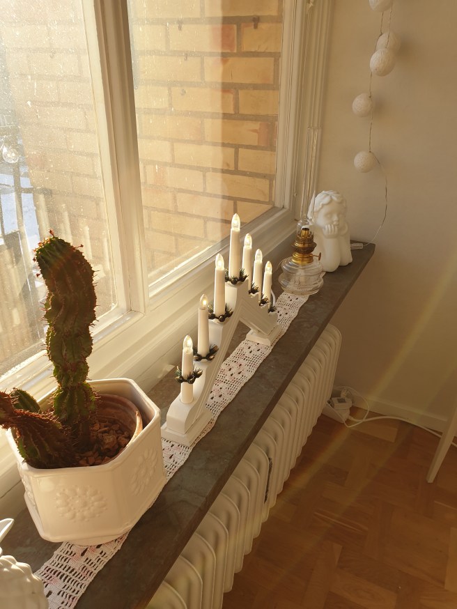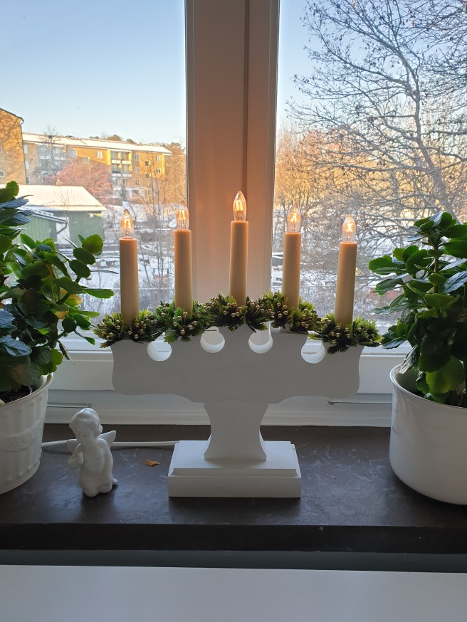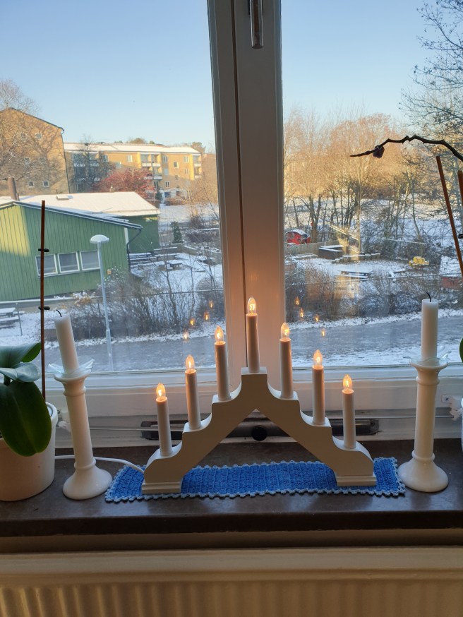 Jag satte fram mina adventsstakar i fönstren igår, innan Nettis kom och plockade upp mig.