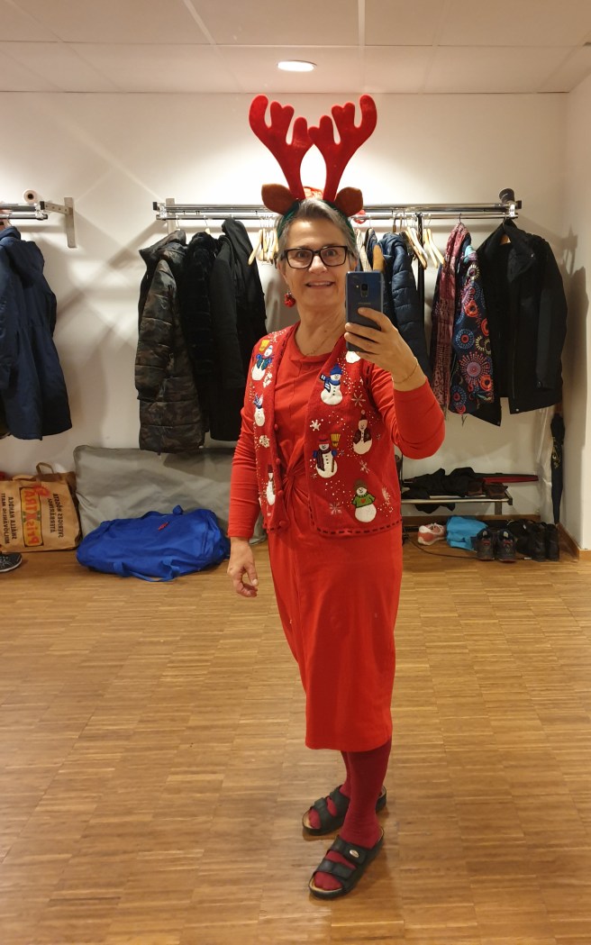 Självklart går jag all in, sockor med julmotiv åkte oxå på efter att bilden tagits. Så julpyntad från topp till tå! Med julkulor i öronen oxå. Hehe!