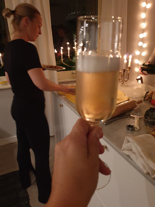 Vi hade julmusik på och smuttade på glögg medan vi bakade.