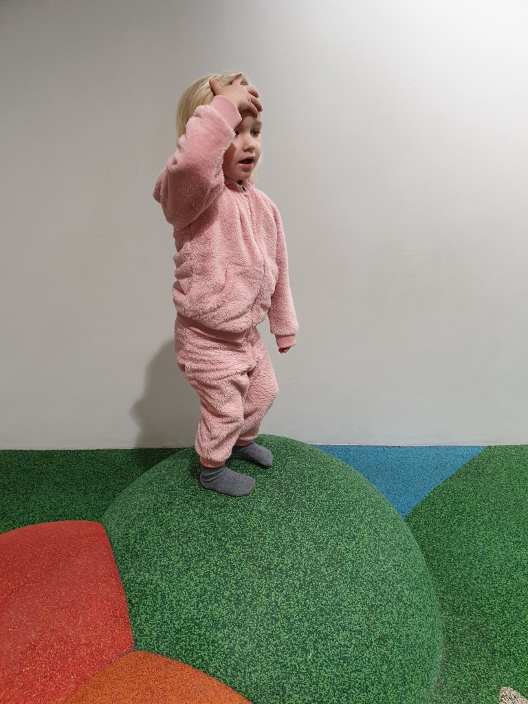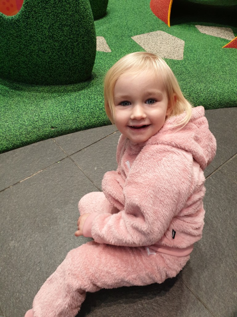 Vi kollade runt i affären en stund, hittade gosiga tyger att känna på. Korven älskade en fuskpäls som var så gosig att ta i! Sen gick vi till lekhörnan där hon hade superkul!