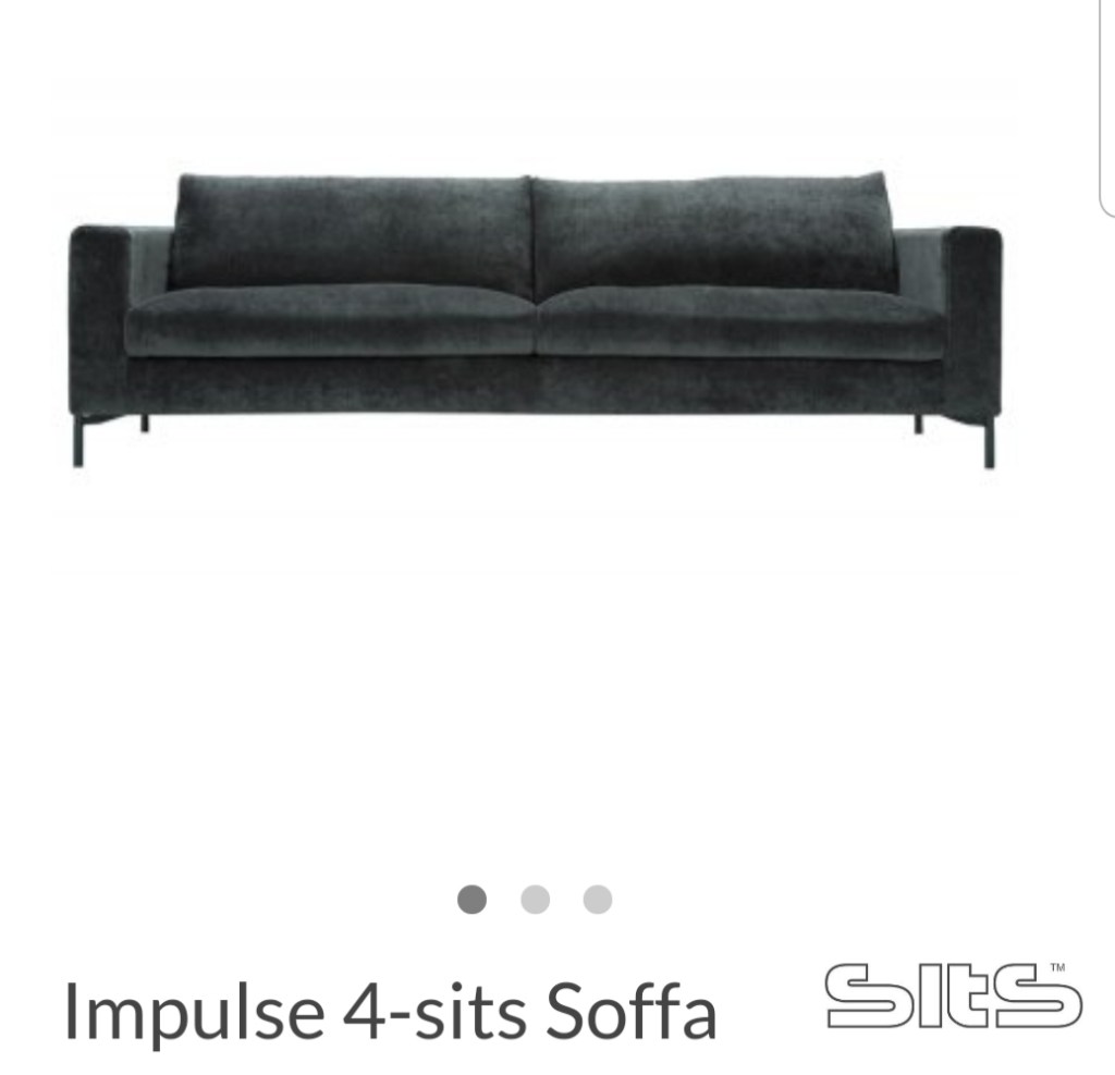 Fast ett ljusare tyg och ben i borstat stål. Tyget går att ta av och tvätta. Ååå, nu måste jag ha tålamod att vänta i 6-8 veckor bara, innan jag får hem den. Nån som vill ha en 3-sitssoffa med 2 klädslar, 1 naturvit och 1 nougat?