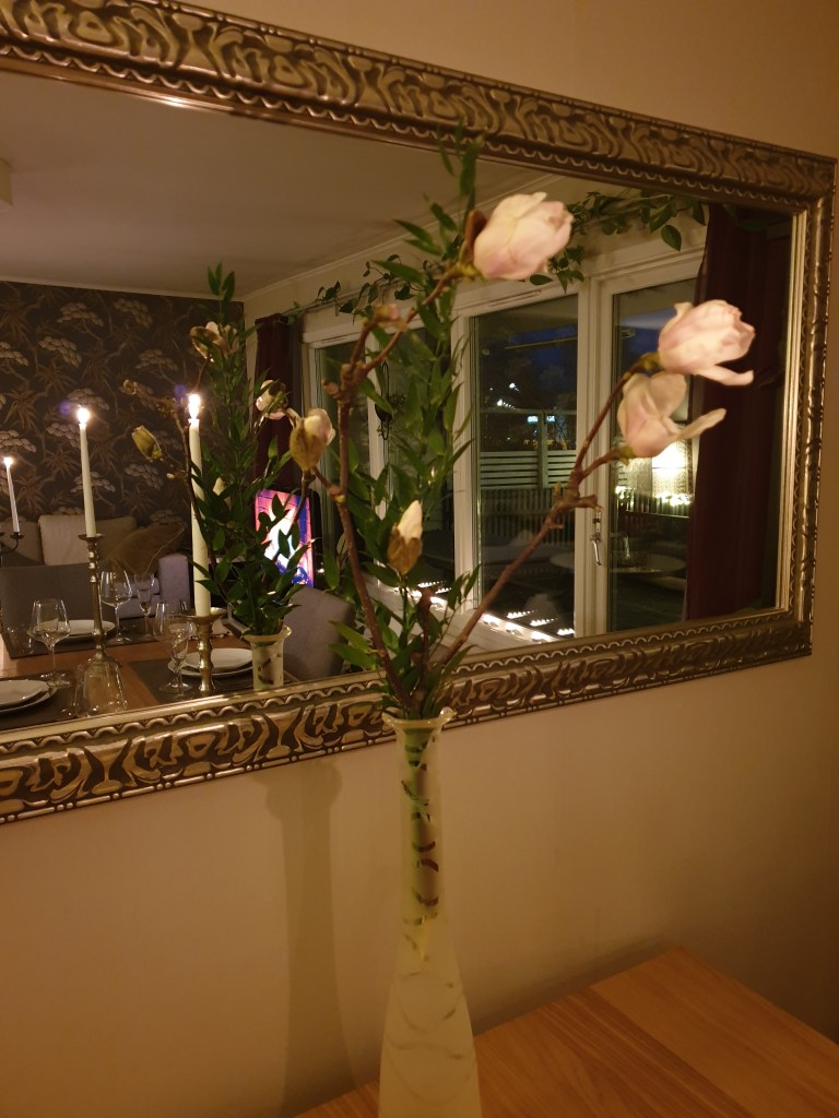 Jag ville ha en vårlik blomma med mig och hittade Magnolia i blomsterbutiken! Så vacker!! Hoppas den står ett tag.