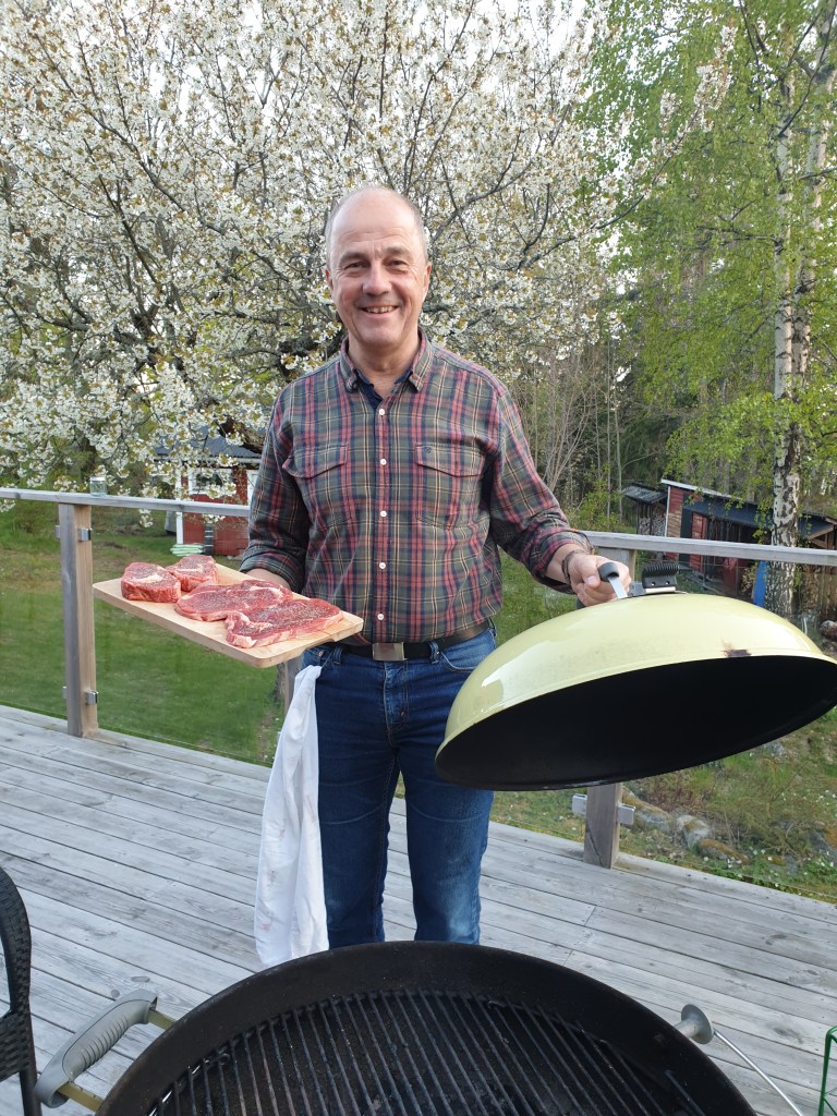 Ett glas bubbel när vi kom fram och Håkan grillade. God middag, babbel och skratt.