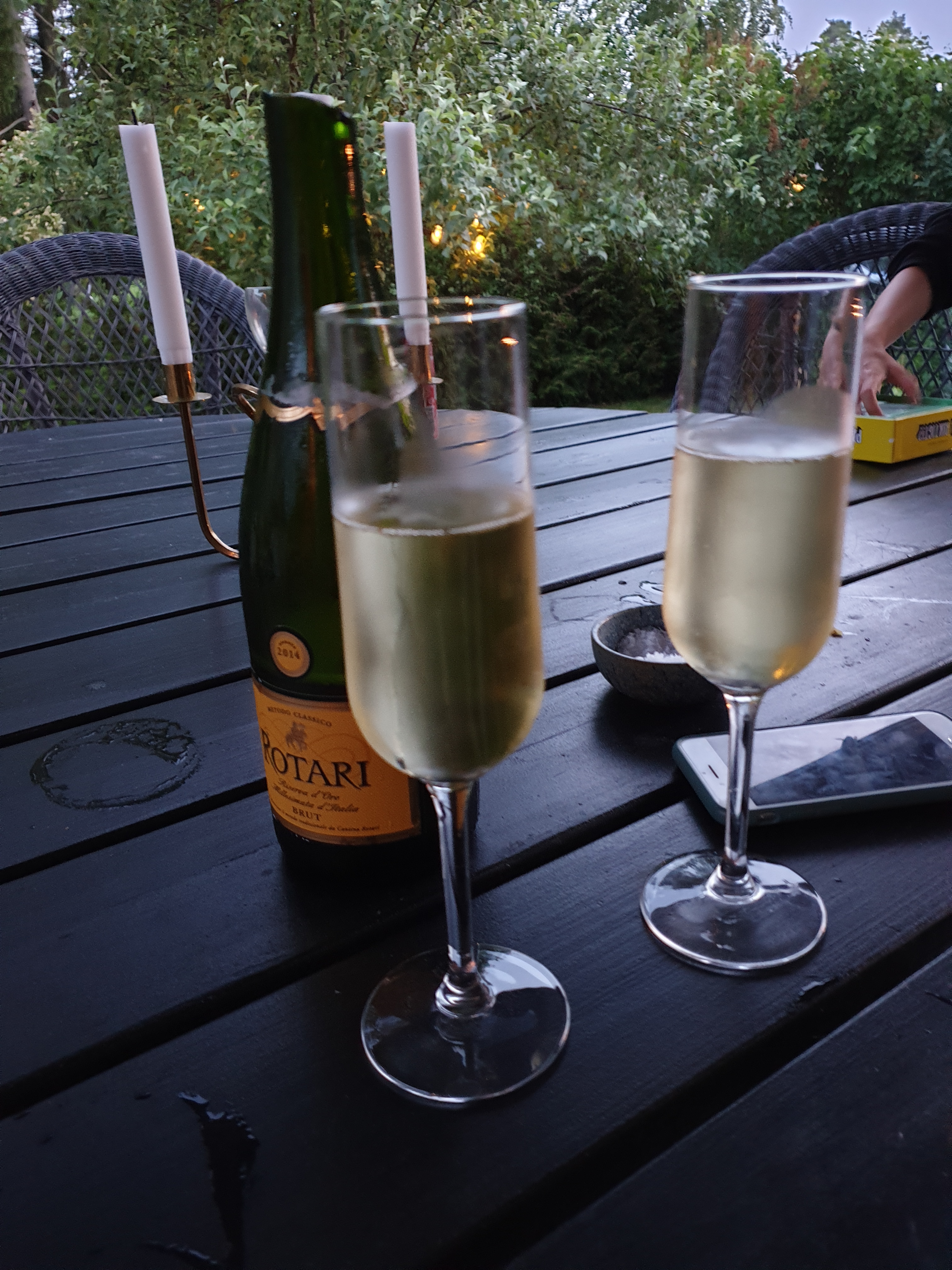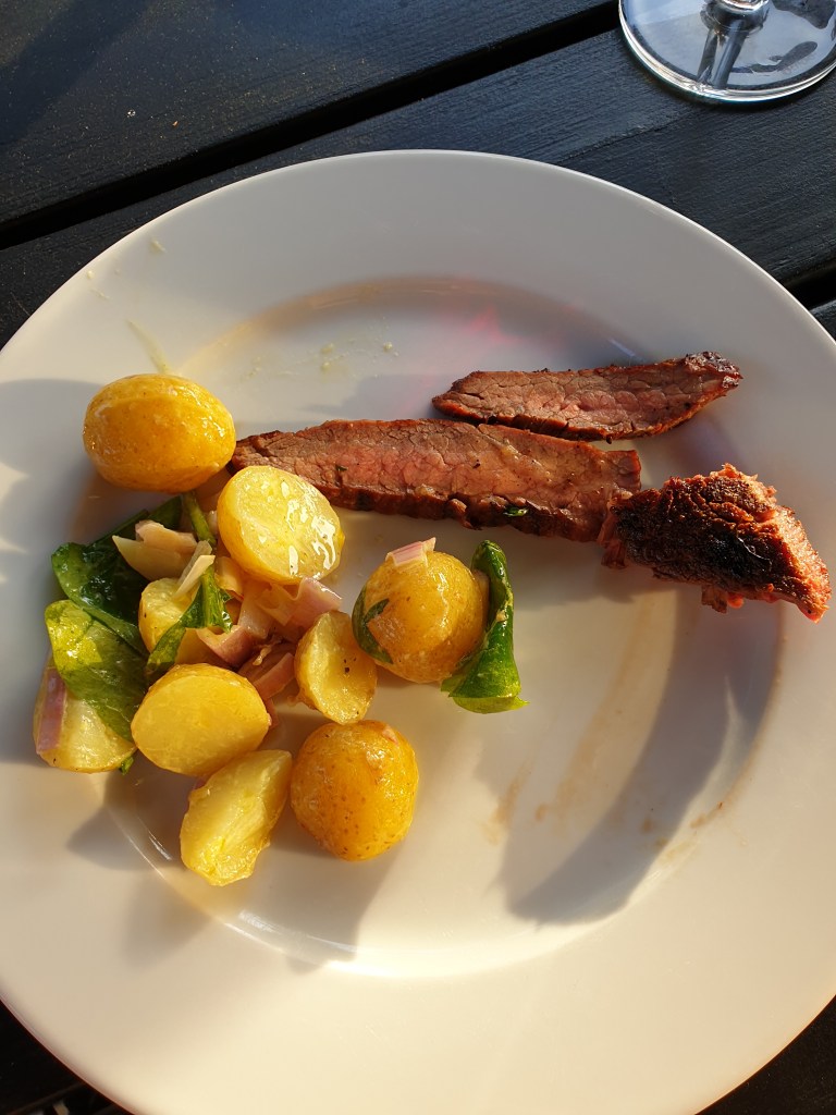När vi kom hem igen så knatade vi iväg till affären och handlade middagsmat. Sen grillade svågern kött som var så himla gott! Systeryster gjorde en smarrig fransk potatissallad som vi åt till.
