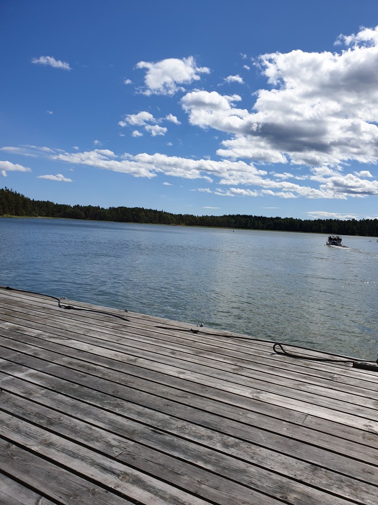 Prick 20.00 stängde jag av jobbdatorn igår. Grabbade tag i väskan och kastade mig i bilen och åkte och plockade upp Nästanguddottern. Och så åkte vi mot Anitas brygga. Anita kom och mötte upp med båten ut till ön. Så mysigt!