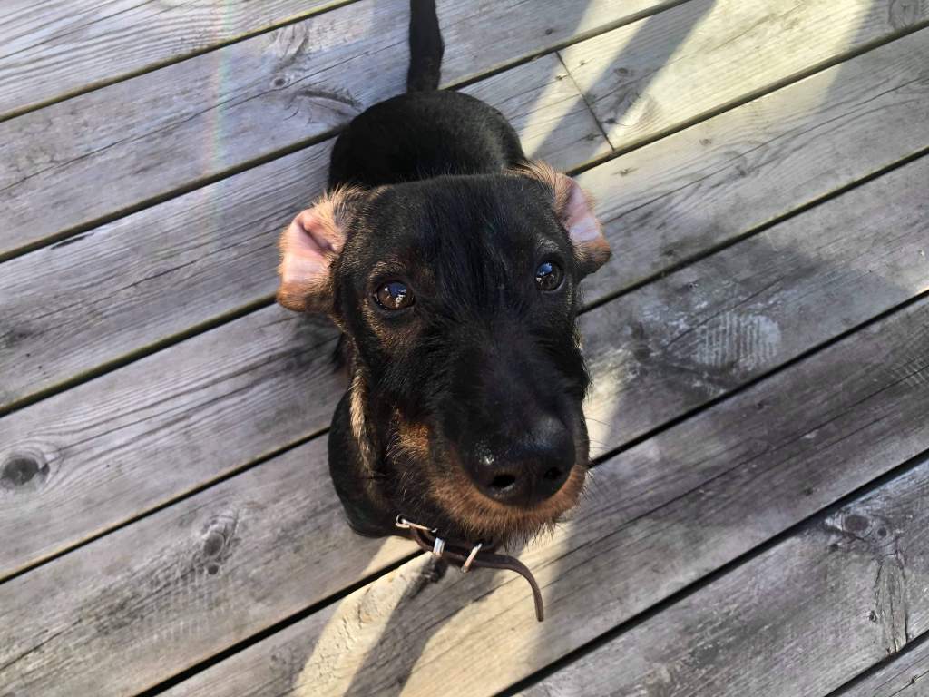 Jag tog ut honom så han fick gå och kissa och göra ifrån sig. Sen in för en lugn frukost. Jo tjena… Hade det funnits hugade spekulanter hade jag lätt sålt honom. Särskilt som han inte precis var sitt allra charmigaste jag. Han hoppade upp och skulle gnaga på mig och gav sig inte hur sträng jag än var. Lilla trotsiga skithund!