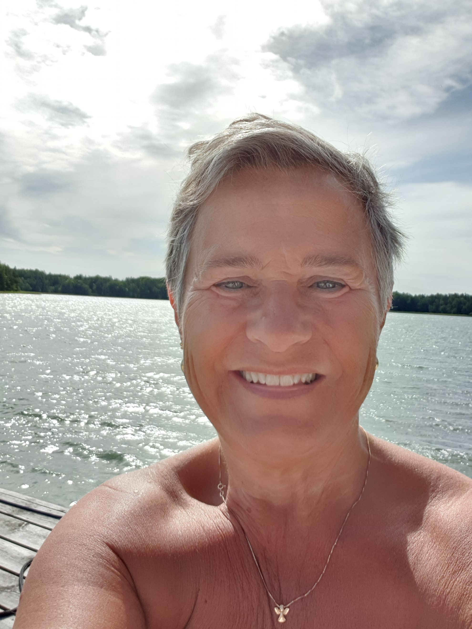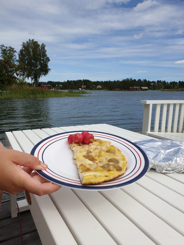 Efter frukost igår så satte jag igång och gjorde en bondomelett med potatis och lök, stekt med vitlök. Sen packade vi med oss den och dricka och knatade ner till bryggan.