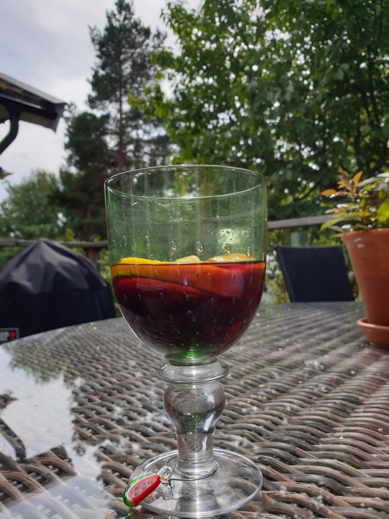Men när vi ätit lunch var det halv storm och helt grått på himlen så vi knatade upp till huset. På altanen var det vindstilla så vi satt ute och läste. Och sen tog vi fram paddan och kollade på några avsnitt av De tolv. Och drack sangria.