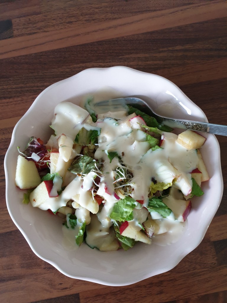 På lunchen idag så sken solen, så salladen åts på balkongen.