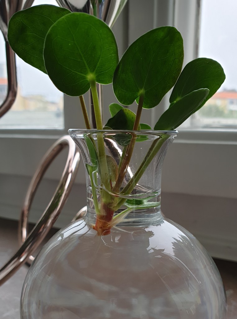När jag satt och åt frukost fick jag syn på att det börjar komma små rötter på Elefantöraskotten (jösses, långt ord!). Så nu blir jag sugen på att plantera dem!