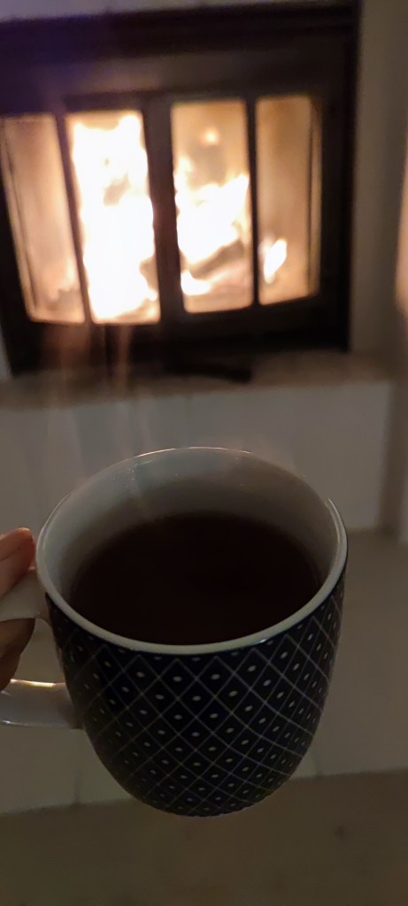 Det var så smarrigt!! Mätta och belåtna så tog vi varsin kopp te, tände en brasa och kollade på en deckare på paddan.