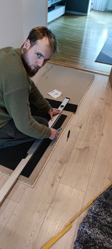 Toyboy monterade byrån direkt när vi kom hem. Och skar till dörrmattorna så de passar i garderoben. Det blev superbra!