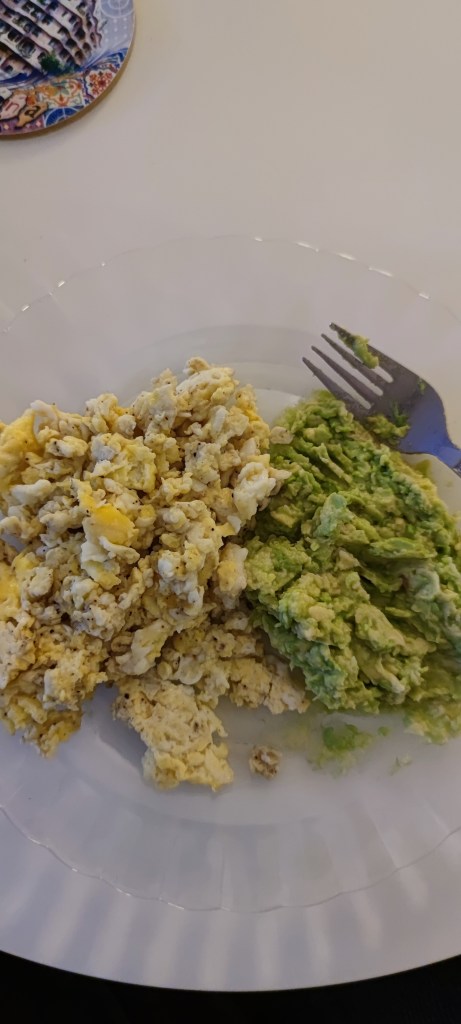 Jag får bara äta mjuk mat, så lunch igår blev tomatsoppa, och middag blev mosad avokado och äggröra.