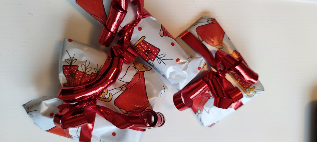 Och så slog jag in julklapparna som jag ska skicka till Kris i Chicago.
