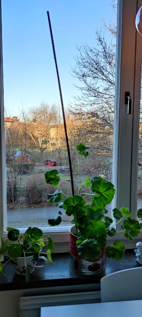Igår fick jag syn på att en av pelargonerna i köket behövde lite stöd. Så jag kollade bland mina blompinnar, men hade bara riktigt långa pinnar.