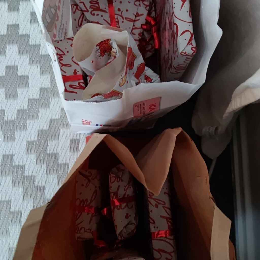 Medan de var i ugnen så slog jag in alla julklappar. Snöret räckte precis till sista paketet!