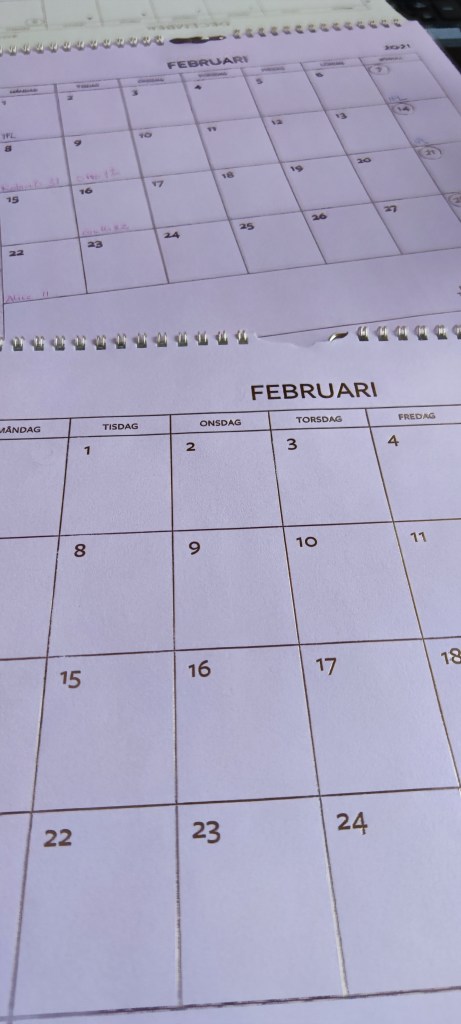 Dels så vek jag ju en hel del tvätt. Bläh… Och så skrev jag in alla födelsedagar i årets kalender.