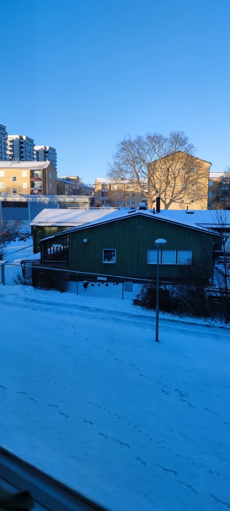 Jag såg att det snöade ute, och idag är det ett tjockt lager snö.
