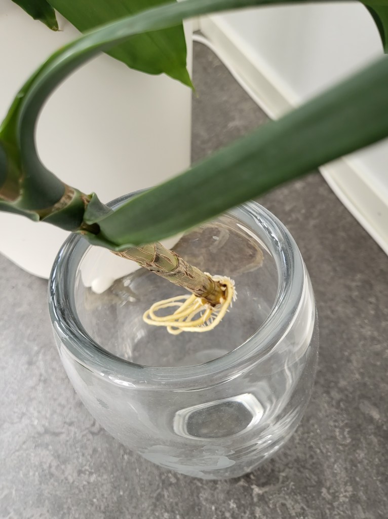Jag la i lite ny jord och vattnade ordentligt när jag hade planterat stammen med rötterna.