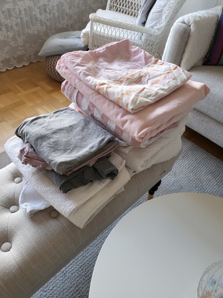 Sen kom städerskan!! Å som hon gnor, fejar och städar! I vanlig ordning hade jag lite ovikt tvätt liggandes. Och hon till och med vek den!!