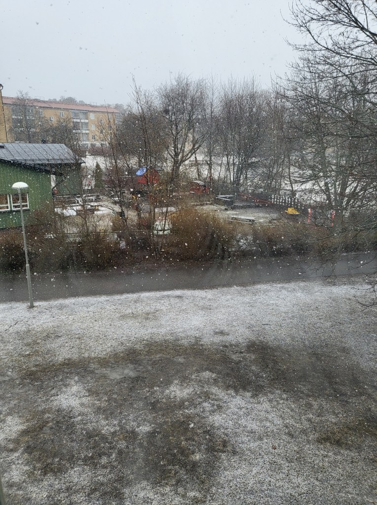 Det brukar ju oftast smälta bort med en gång, men inte ens det gör det. Helt vitt ute idag. Och små flingor i luften idag med…