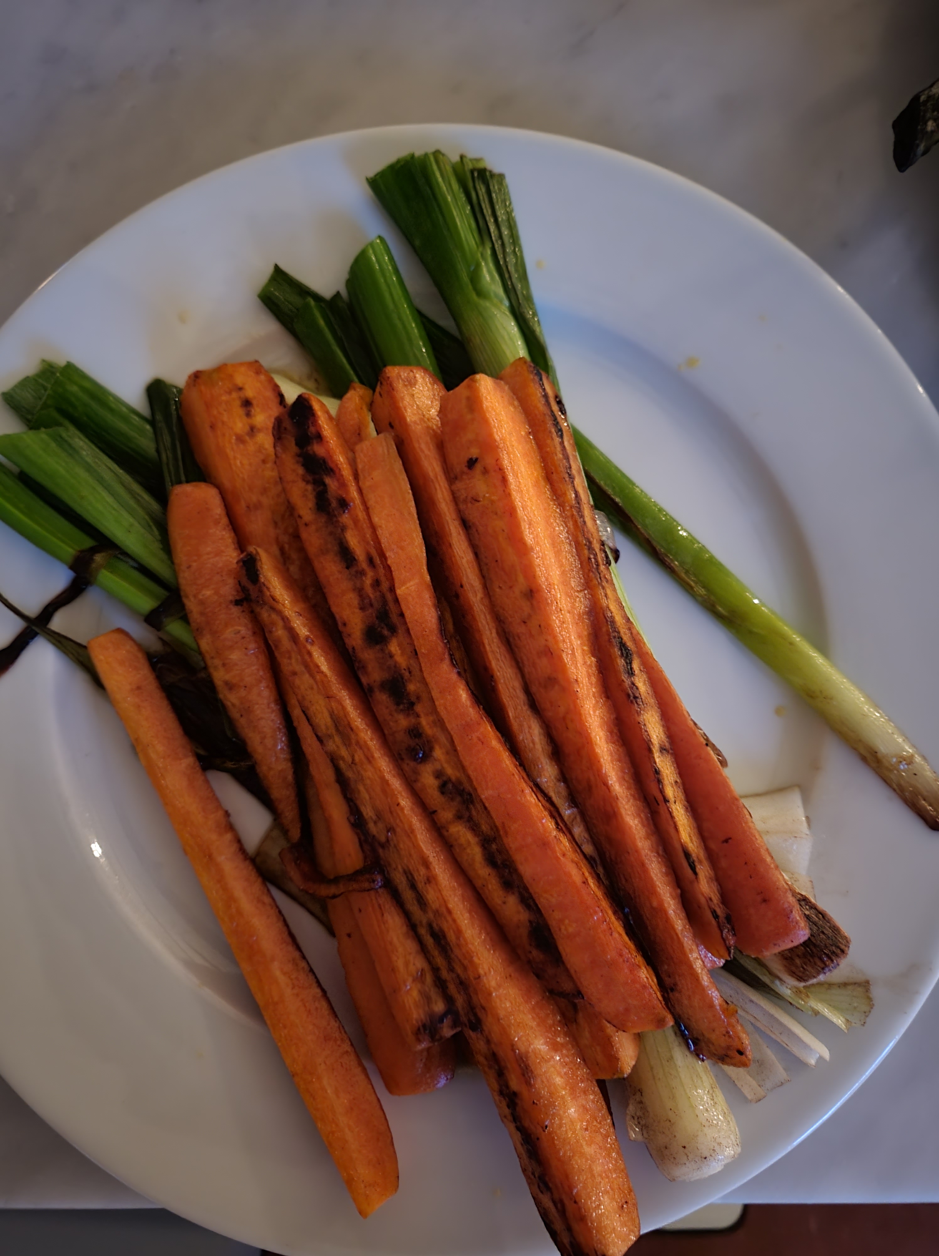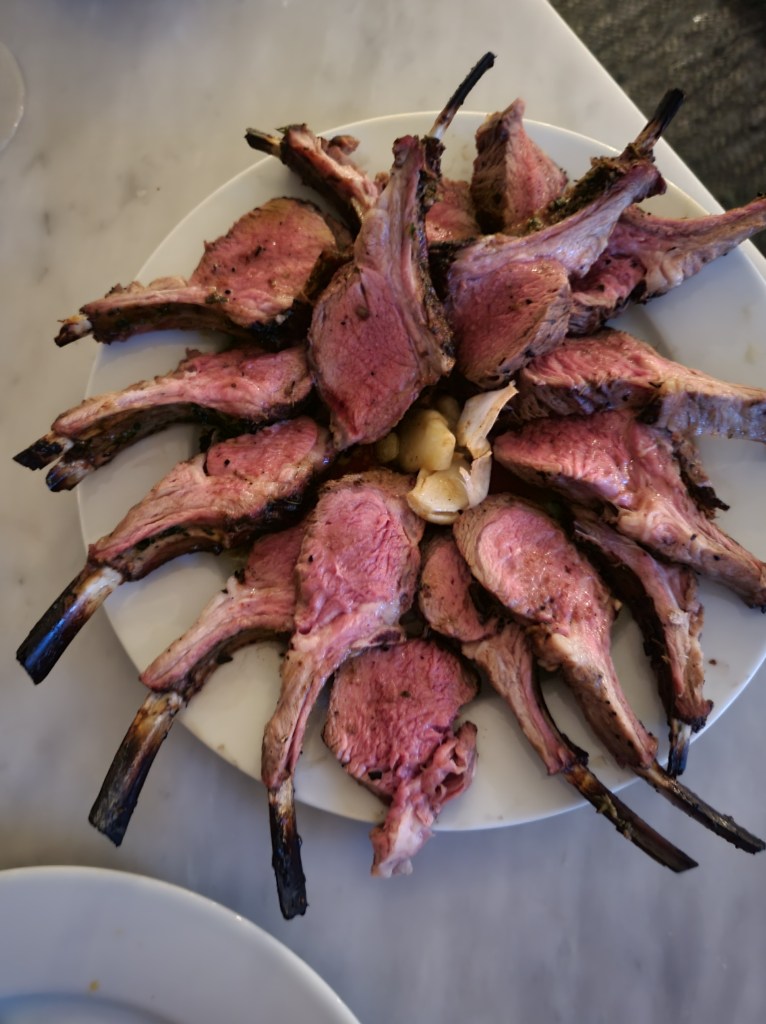 Sen till middag lagade SvÄgern lamracks. Mmmm! VÀldigt gott, och stekt lök och morot till, och ugnspotatis. Mums!