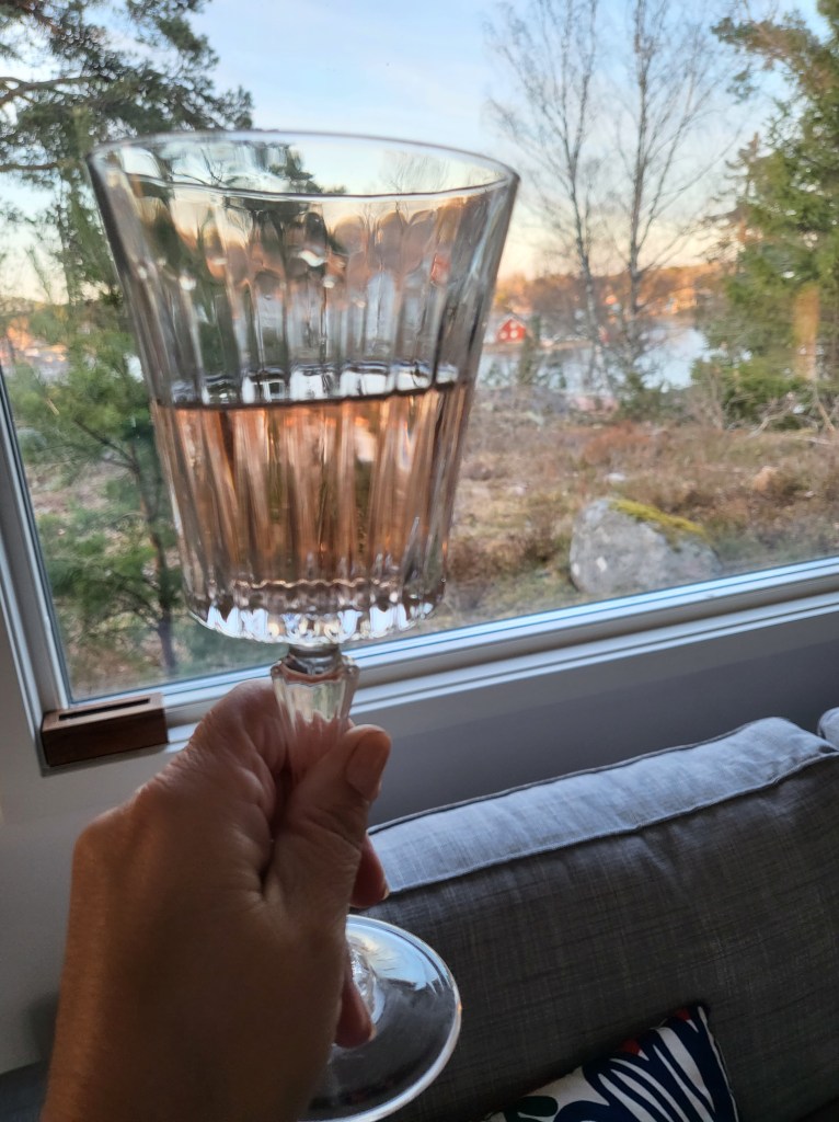 Vi tog varsitt glas rosé, sen fixade vi lite att äta. Sen tog Anita fram projektorn och vi kollade på 2 program på storbild. Mys!!!
