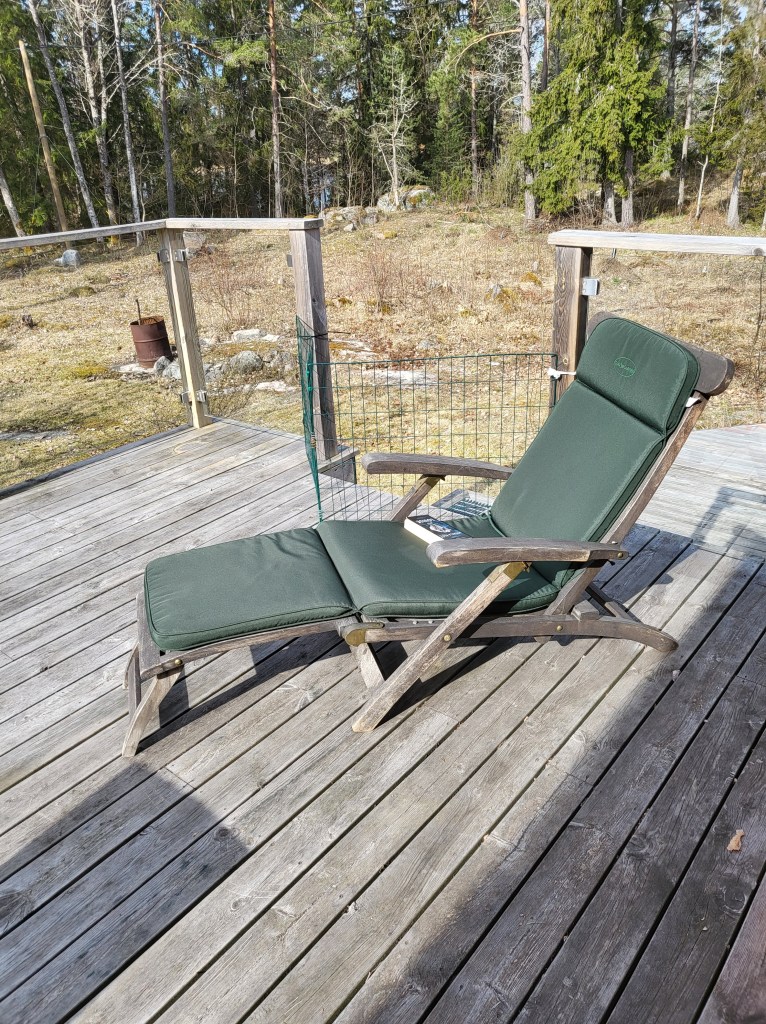 Idag är det lite grått, men en stund var det sol, så jag satt på altanen och läste. Och njöt! Men så snart solen inte skiner är det… ….svalt, minst sagt.