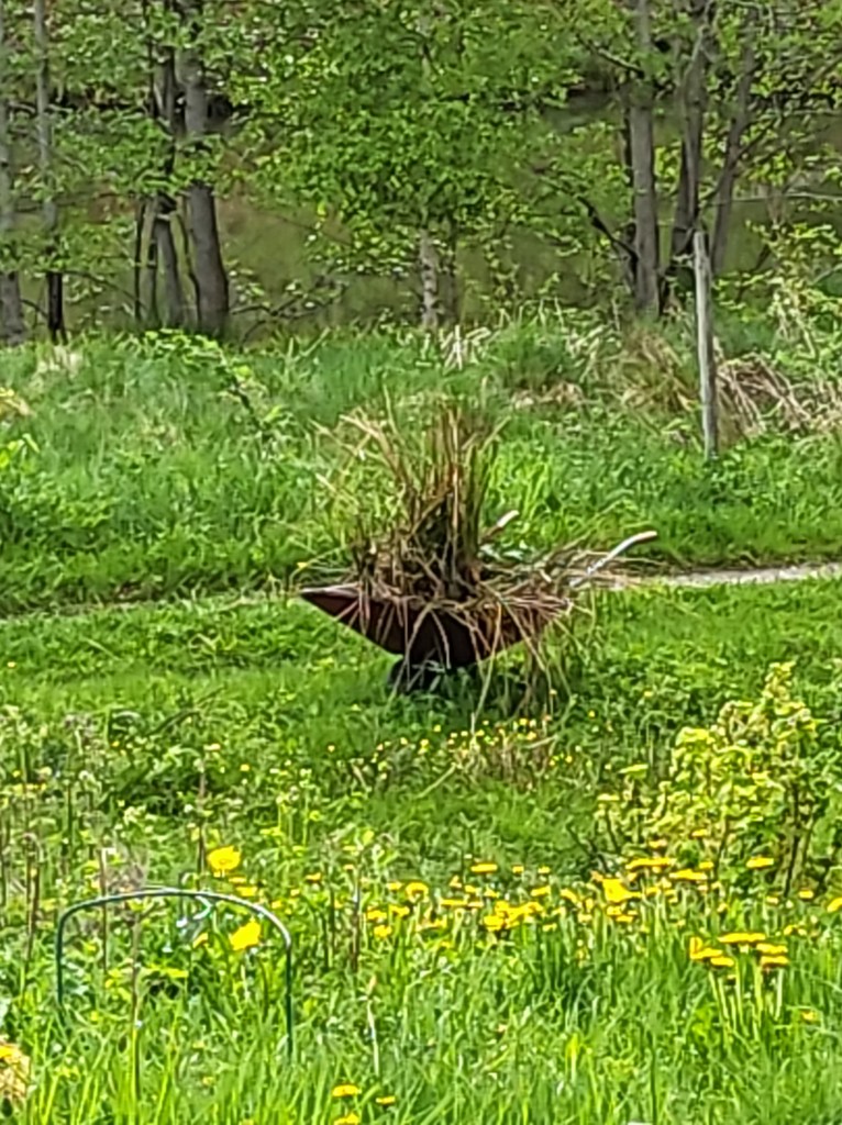 M har rensat diket från vattenväxter, men det ser ut som att hon planterat dem i skottkärran.