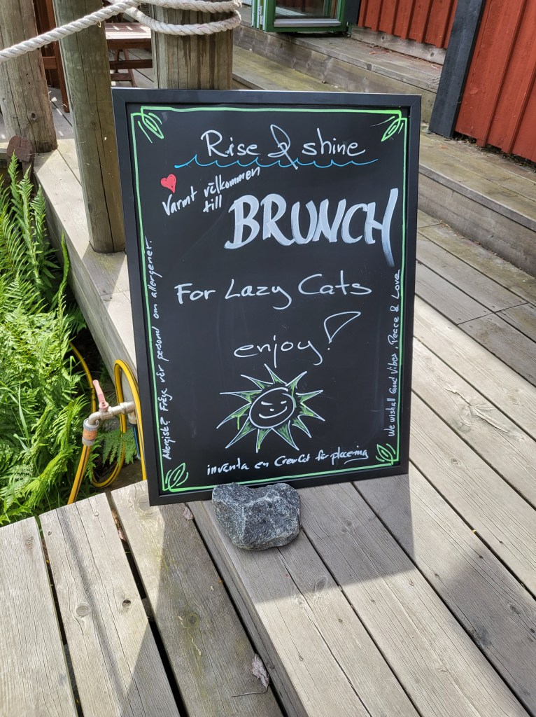 Solen sken, och vi åt gott. Jag tog en avokadosallad och pappa prinskorv, bacon och ägg.
